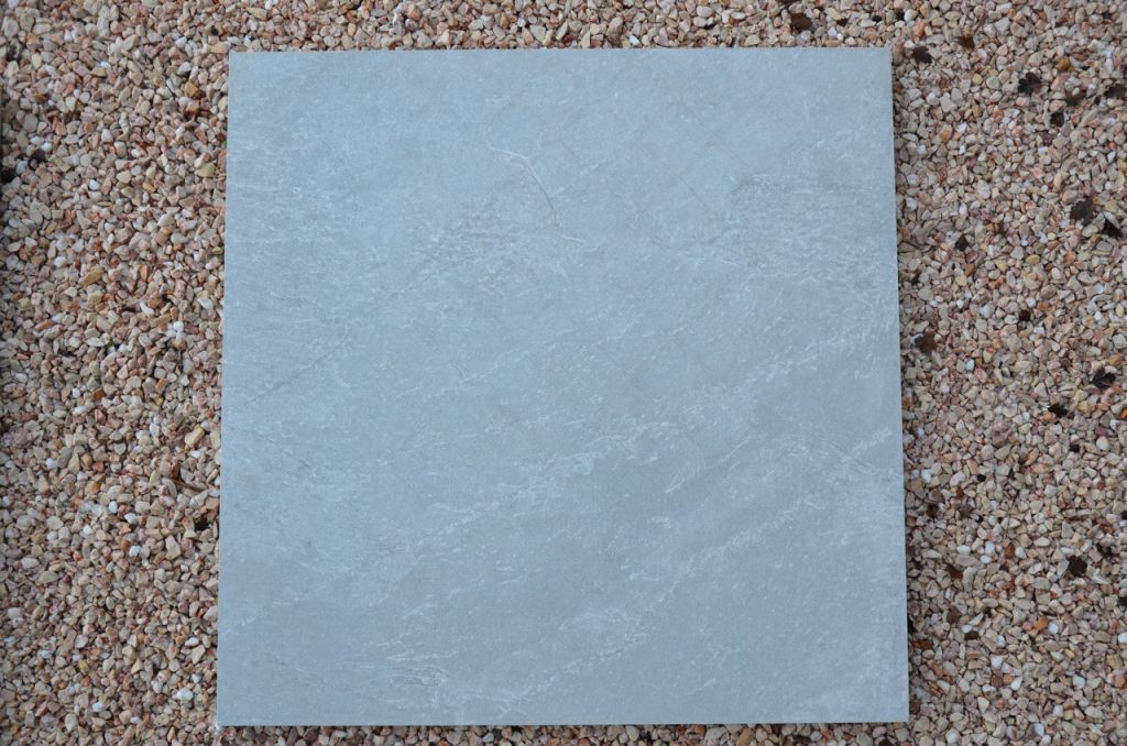 Dalles de grés Le grés cérame est un matériau durable et une grande variété de finitions.Format rectifié : 60 cm x 60 cm x épaisseur 2 cm.