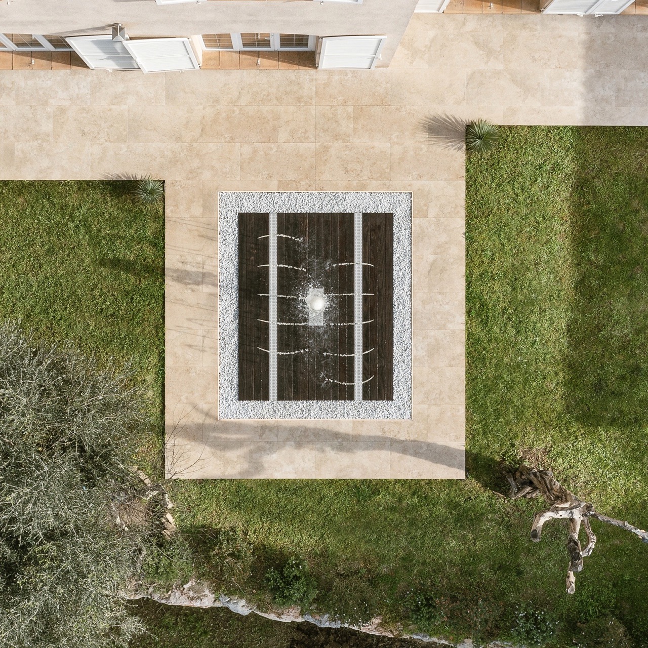 Double rampe latérale de 5 jets clairs, de diamètre 8 mm sur une hauteur de 1m environ. Sortie importante d’eau pour une baignade ludique. Variante de 10 à 20 jets, selon le modèle de terrasse choisi.